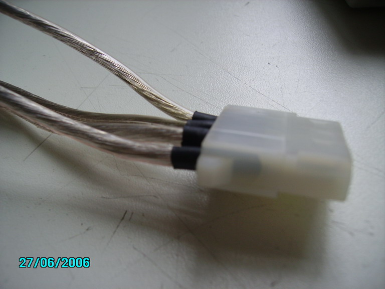 Und noch der Anschluss am NT, da hab ich einfach nen KG-Stecker aufgeschnitzt und die Kontakte einzeln mit Schrumpfschlauch gesichert.. hält bombig..
