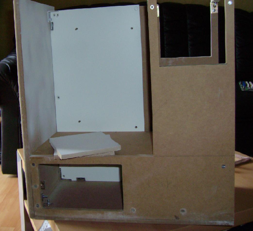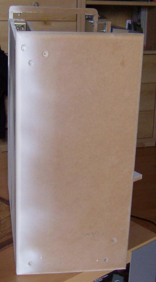 Donnerstag verspachtel ich den teil oben und setze die schaniere ein, danach werde ich mich mit der steuerung und ausfahrtechnik für die hddkäfigabdeckung auseinander setzen.